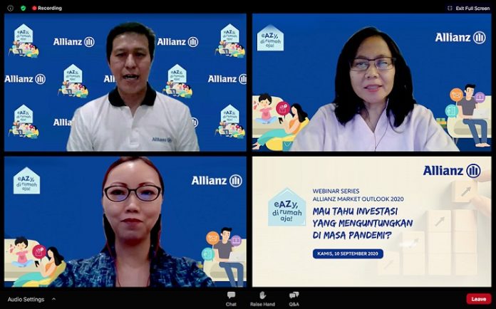 Sebagai apresiasi kepada nasabah sekaligus merayakan Hari Pelanggan Nasional dan Hari Asuransi 2020, Allianz Indonesia menggelar rangkaian program eAZy di Rumah Aja selama Agustus hingga Oktober 2020, diantaranya melalui Webinar Edukasi Memilih Investasi di Saat Pandemi. Hadir sebagai pembicara, Cui Cui, Chief Financial Officer Allianz Life Indonesia, Julieus Himawan, Head of Service Delivery Strategy Allianz Life Indonesia, dan Ni Made Daryanti, Chief Investment Officer Allianz Life Indonesia yang berbagi tips melakukan investasi yang tepat.