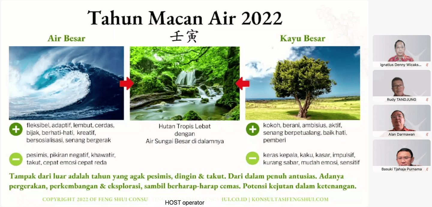 Sementara itu Pakar Feng Shui, Feng Shui Consulting Indonesia, Angelina Fang menjelaskan, karena elemen kayu yang kuat di tahun Macan Air, akan ada tren masyarakat untuk senang bereksplorasi, pergerakan lebih aktif dan adanya sikap impulsif. Agar tetap harmonis di tahun ini, sikap impulsif tersebut perlu dikendalikan karena berpotensi menyebabkan kecerobohan, termasuk dalam mengambil keputusan keuangan.