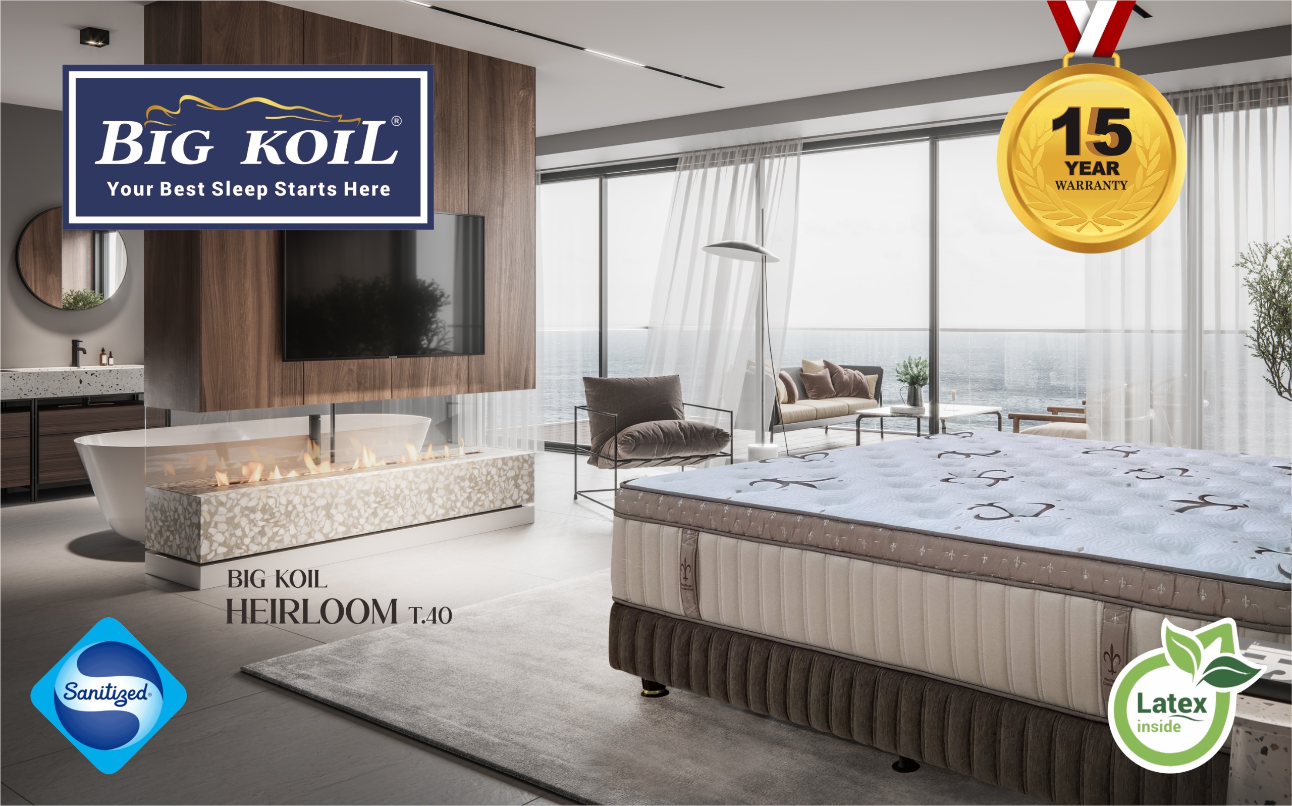 Salah satu tipe terbaru dari Big Koil Heritage Collection ini adalah Heirloom, kasur yang menawarkan kenyamanan optimal untuk mereka yang lebih suka tidur dengan posisi telentang maupun menyamping dengan 5-Zone Nested Pocket Support yang memberikan kenyamanan dan dukungan berbeda di setiap bagian tubuh seperti area pinggul, punggung bawah dan bahu.