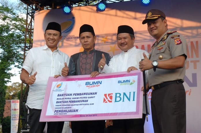 Program yang dibalut dalam Safari Ramadan 1437 H itu dipusatkan di Kantor Karesidenan Kabupaten Garut, Jawa Barat, yang dihadiri Menteri BUMN Rini Soemarno, Direktur Utama BNI Achmad Baiquni Bupati Garut Rudy Gunawan, Kapolres Garut AKBP Arif Budiman, serta jajaran direksi BUMN lainnya yang berlangsung di Alun-alun Garut, Jawa Barat, Jumat (24 Juni 2016).