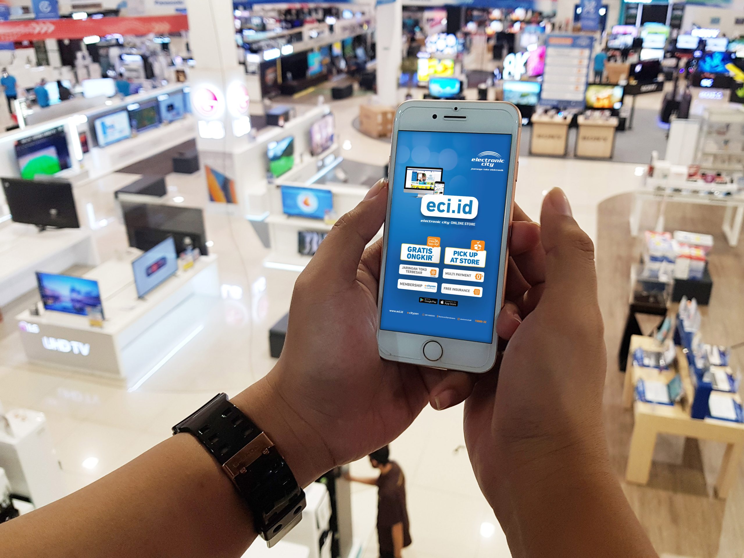Seluruh produk tersebut tersedia dan dapat dibeli di eci.id (www.eci.id) dan seluruh toko offline Electronic City. Kelebihan membeli melalui eci.id yakni setiap transaksi cicilan 0% dengan kartu kredit bank yang berpartisipasi akan bebas dari biaya tambahan atau biaya layanan kartu kredit, sehingga konsumen hanya akan membayar sesuai dengan harga produk yang dibeli.