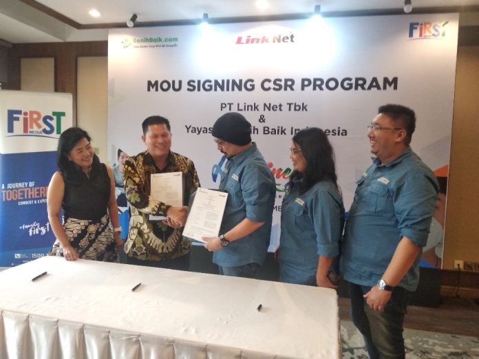 Marketing – PT Link Net Tbk (Link) dengan brand First Media, kembali melakukan kegiatan Corporate Social Responsibility (CSR) ‘First Happiness #ShareTogetherness’. Kali ini, berkolaborasi dengan BenihBaik.com – platform penggalangan dana untuk membantu orang lain yang membutuhkan uluran tangan.