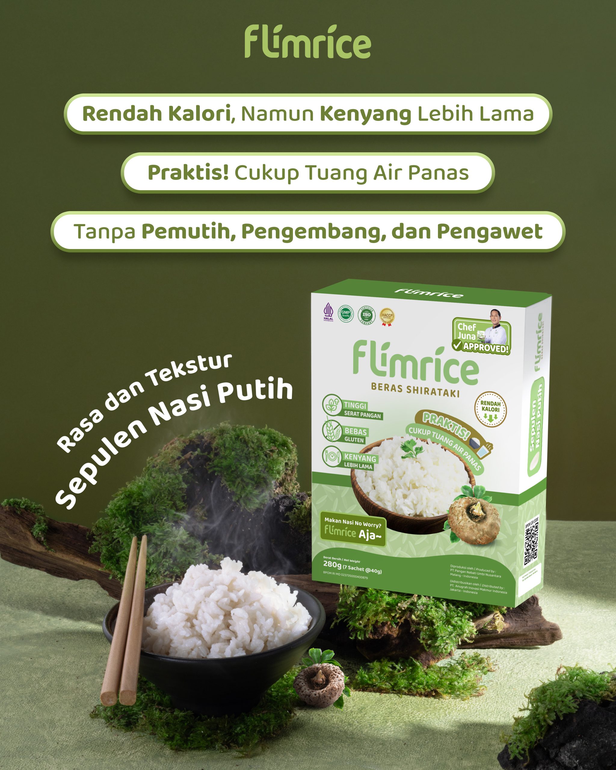 Dengan komitmen tersebut, Flimty menciptakan nasi diet Flimrice sebagai produk baru Flimty; nasi diet shirataki yang rendah kalori, tinggi serat, dan membantu kenyang lebih lama dari nasi putih biasa.