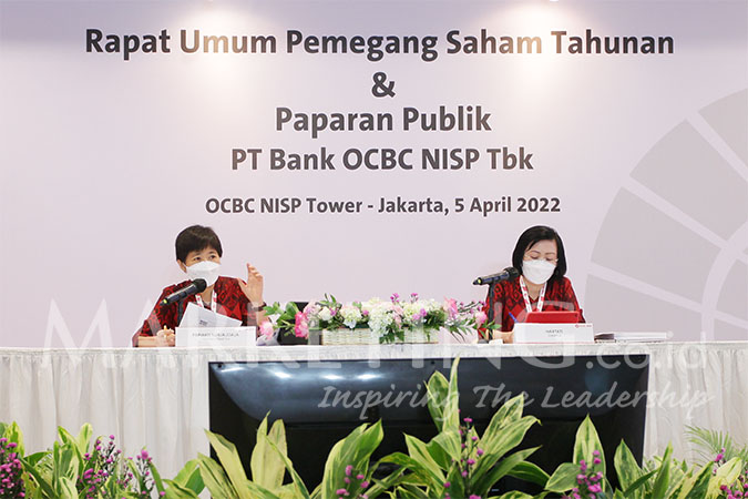 Marketing.co.id – Berita Gallery, Berita Foto | PT Bank OCBC NISP Tbk, hari ini menyelenggarakan Rapat Umum Pemegang Saham Tahunan (RUPST) secara hybrid. Dalam RUPST ini diumumkan kinerja positif sepanjang tahun 2021 dengan peningkatan laba bersih sebesar 20% year on year (yoy) atau mencapai Rp 2,5 triliun yang didorong oleh peningkatan pendapatn bunga bersih sebesar 7% yoy serta diiringi penurunan beban cadangan kerugian penurunan nilai sebesar 7% yoy.