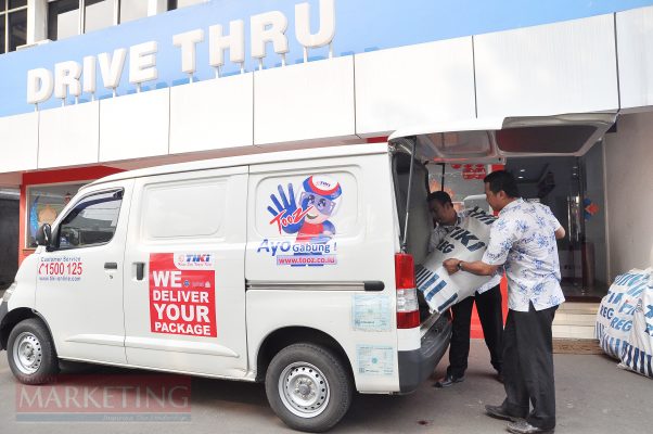 Tomy Sofhian, Managing Director TIKI (kiri) saat berinteraksi dengan pelanggan TIKI yang hendak mengirim barang ke luar kota. Selama bulan Ramadhan, TIKI mengalami peningkatan pengiriman sebanyak 50% dari bulan biasa. Peningkatan pengiriman biasanya terjadi pada tiga (3) minggu sebelum sampai satu (1) minggu sebelum hari Lebaran. Foto: Majalah MARKETING/Lialily