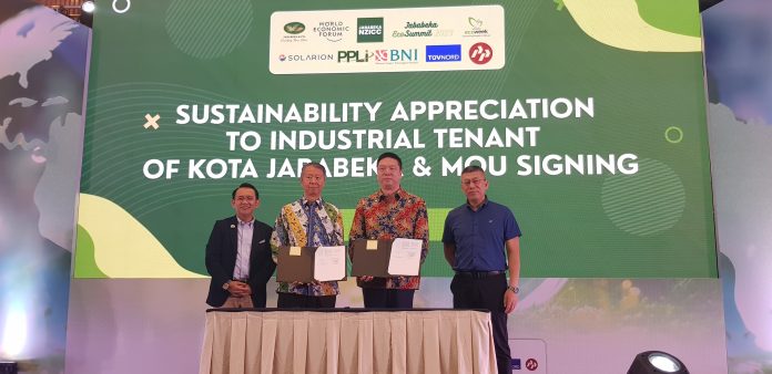 Seperti diketahui, sebelumnya, salah satu aksi nyata yang dilakukan Jababeka adalah mendeklarasikan ambition statement bersama tiga tenant-nya dengan target karbon netral pada 2050, dan Kawasan Industri Jababeka-Cikarang bergabung dalam jaringan World Economic Forum (WEF) sebagai The First Net Zero Industrial Cluster in South East Asia.
