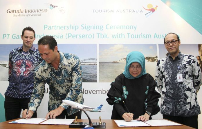 Maskapai penerbangan nasional Garuda Indonesia dan Tourism Australia kembali melakukan perpanjangan kerjasama menyusul kesuksesan kedua institusi tingkatkan wisatawan antar kedua negara. Melalui kerjasama ini Garuda Indonesia berhasil mengangkut sebanyak 521.142 penumpang di regional Australia selama periode Sep 2016 – Jun17.