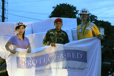Dalam mendistribusikan kasur tersebut, tim Massindo Group bersama dengan Kopassus membalut kasur-kasur tersebut dengan menggunakan matras protektor tahan air, Protect A Bed. Kasur yang sudah dibalut Protect A Bed diambangkan langsung di atas air bah setinggi 60-70cm.