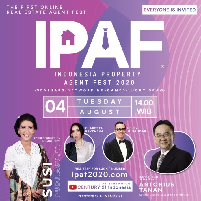 Marketing.co.id – Berita Properti | Perhelatan tahunan Indonesia Property Agent Fest (IPAF) kembali digelar untuk ke-4 kalinya secara live streaming pada Selasa, 4 Agustus 2020 di Youtube Channel CENTURY 21 Indonesia.