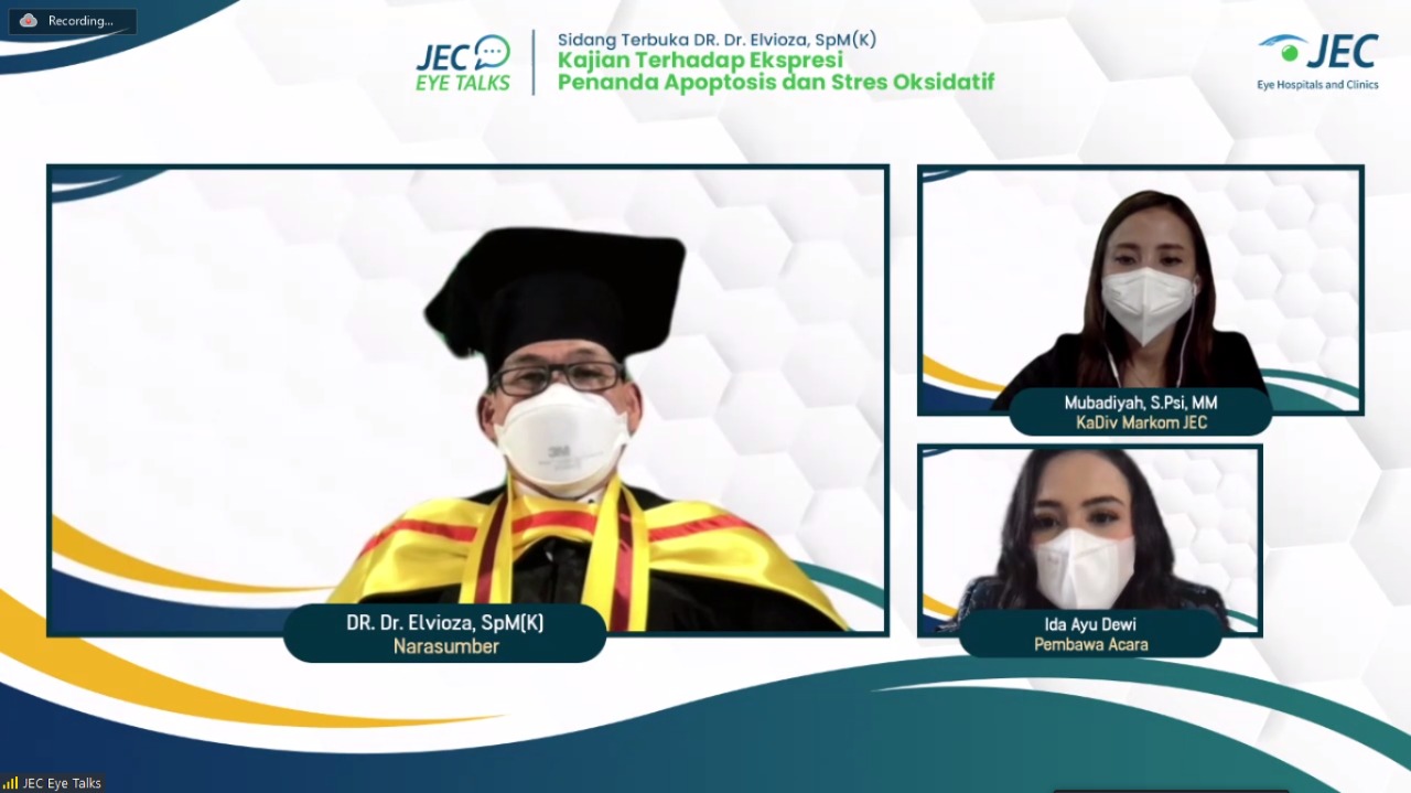 Tak berhenti pada jumlah SDM yang memadai, JEC terus mendorong tenaga ahlinya untuk terus meningkatkan kapabilitas diri. Paling terkinj adalah penelitian DR.Dr. Elvioza, SpM(K) yang tertuang dalam disertasi: “Perbandingan Proses Penuaan Cairan Vitreus pada Pasien Ablasio Retina Regmatogen Usia Muda dengan Miopia Aksial dan Pasien Ablasio Retina Usia Lanjut Tanpa Miopia”.