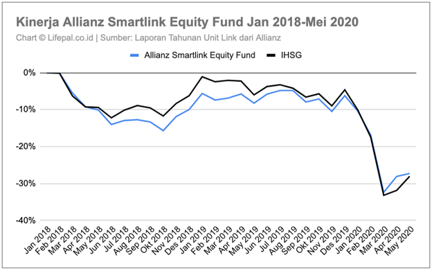 Sejak Januari 2018, kinerja unit link berlabel Allianz Smartlink Equity Fund ini tercatat hanya -27,2%, atau paling kecil dibanding sembilan produk lainnya.