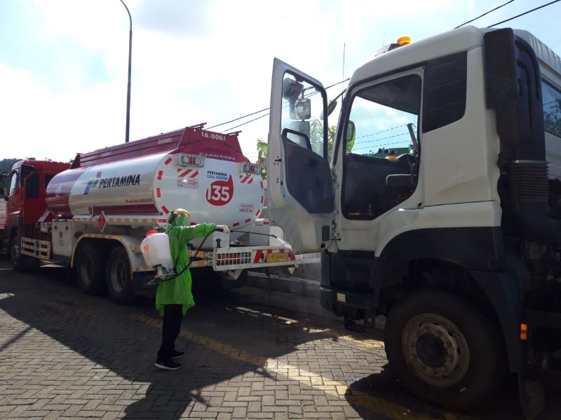 Selama masa pandemi, setiap pelanggan yang melakukan perbaikan truk di bengkel Astra UD Trucks, akan diberikan penyemprotan disinfektan dan masker bagi pelanggan atau driver yang datang atau tidak mengenakan masker.