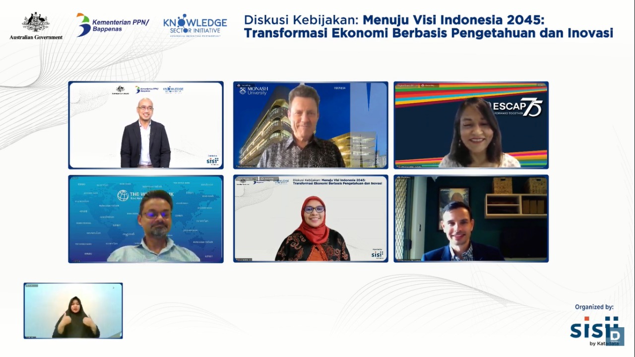 Kementerian PPN/Bappenas dan Knowledge Sector Initiative (KSI) menyelenggarakan webinar tingkat tinggi bertema ‘Menuju Visi Indonesia 2045: Transformasi Ekonomi Berbasis Pengetahuan dan Inovasi.’
