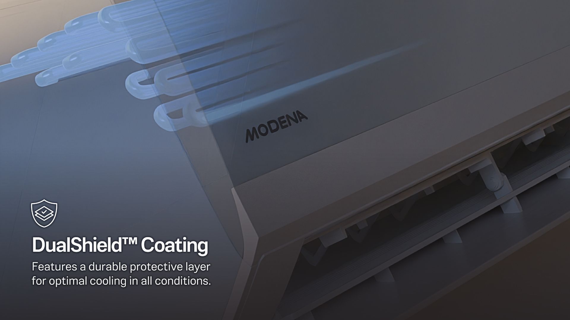 Menjawab keluhan umum seperti AC cepat berkarat, bocor, atau performa yang tidak stabil, AC MODENA diperkuat dengan beberapa teknologi kunci untuk memastikan daya tahan tinggi. Pertama, DualShield Coating yakni pelapisan khusus pada unit indoor dan outdoor untuk perlindungan maksimal dari kelembapan, karat, dan kebocoran.