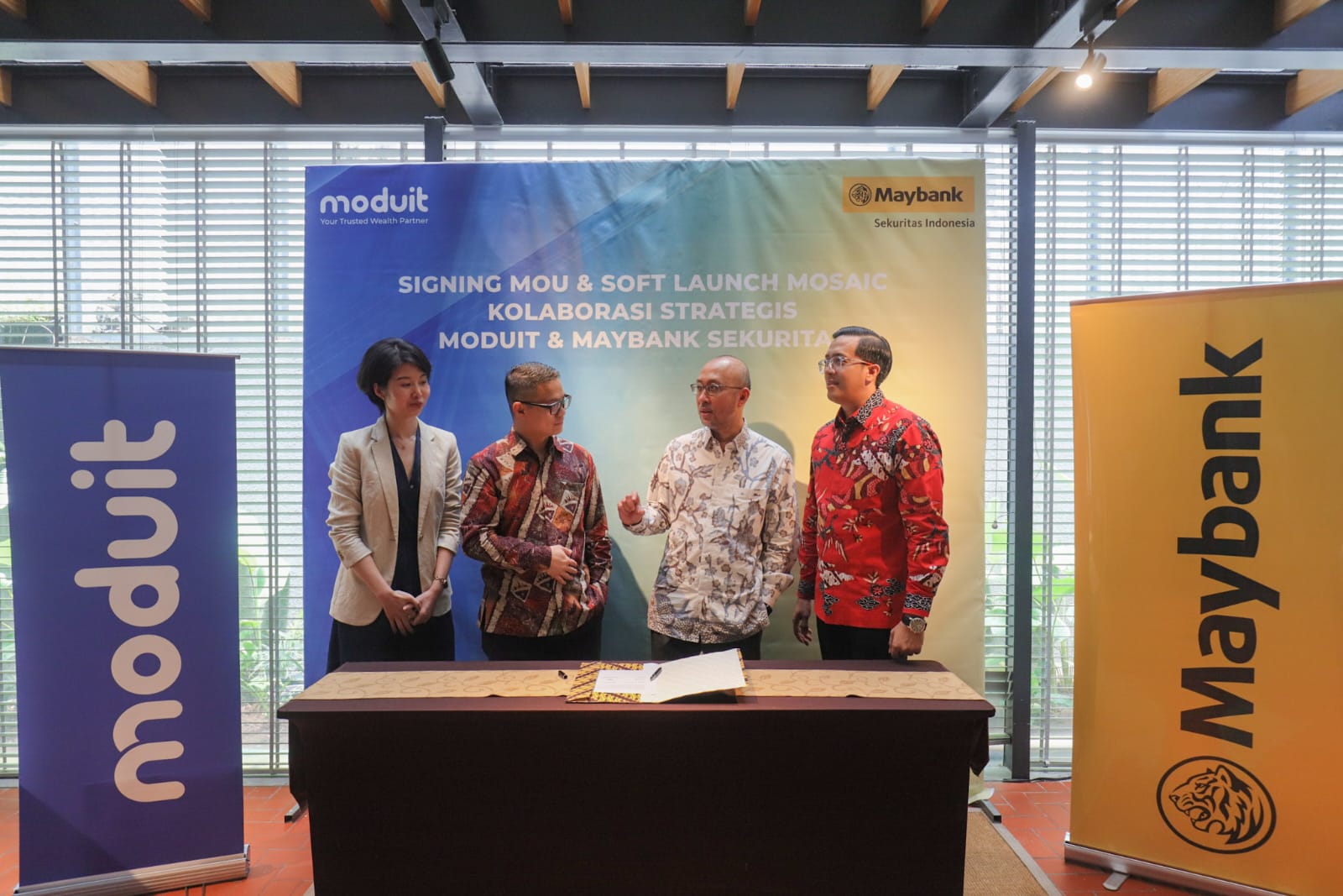 Marketing.co.id – Berita Financial Services | PT Moduit Digital Indonesia (Moduit) menandatangani perjanjian kerja sama dengan PT Maybank Sekuritas Indonesia (Maybank Sekuritas) untuk soft launch layanan inovatif terbaru mereka, Moduit Stock Advisory Service (Mosaic).