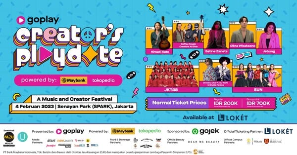 GoPlay Creator’s Playdate merupakan festival untuk kreator musik yang mempertemukan antara fans dan konten kreator ternama di Indonesia tersebut, bakal diselenggarakan di Jakarta pada 4 Februari 2023 di Senayan Park (SPARK) Jakarta.