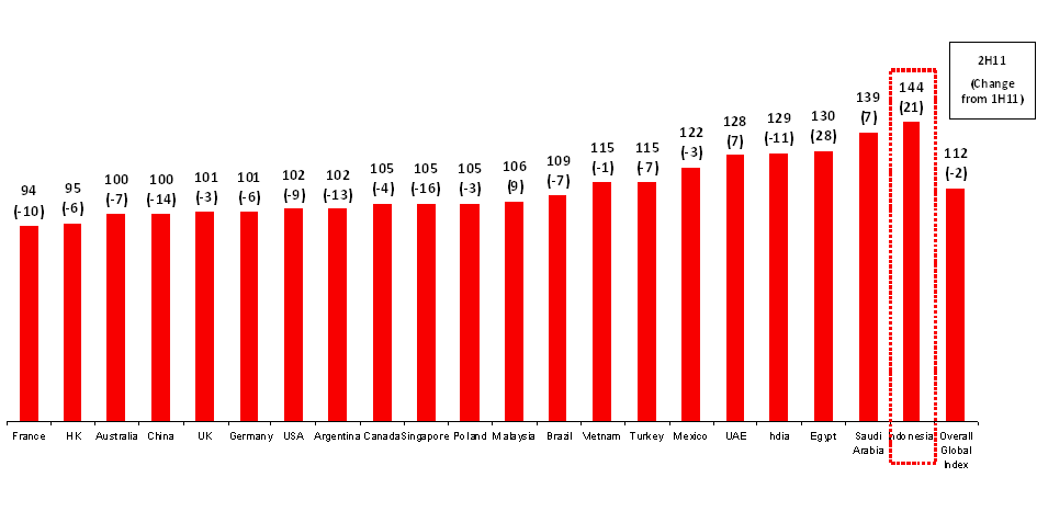 Kondisi pesatnya pertumbuhan perdagangan juga tercermin dalam optimisme pelaku ekspor impor Indonesia, dimana optimisme mereka pada survey kali ini naik 21 poin menjadi 144 poin dari enam bulan sebelumnya. Optimisme pelaku ekspor dan impor Indonesia merupakan yang tertinggi di antara 21 negara yang di survey.