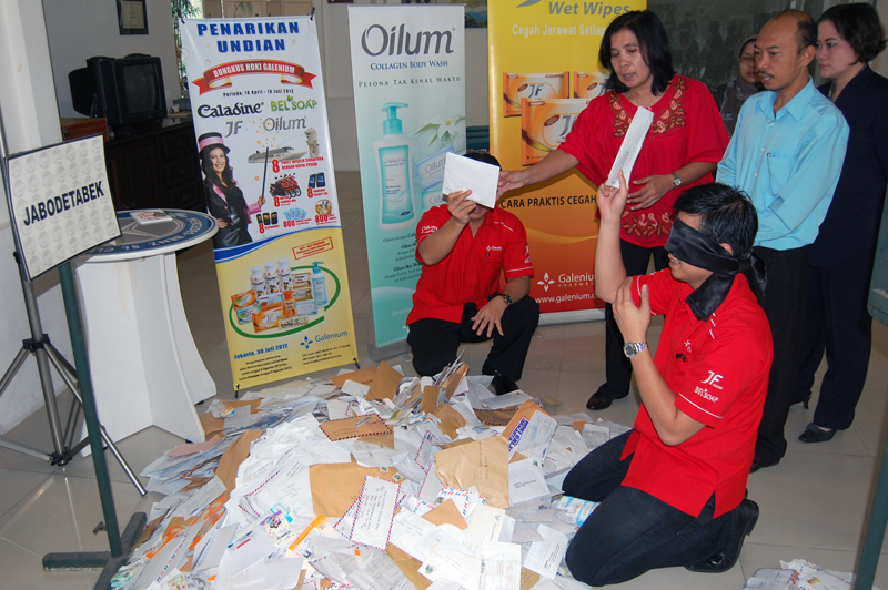 MARKETING, Jakarta – Senin (30/7) siang di Jakarta, PT Galenium Pharmasia Laboratories, perusahaan yang memproduksi produk-produk perawatan kesehatan (health care) dengan merek Caladine, JF, Oilum dan Belshoap, melakukan pengundian dari promo program ‘Bungkus Hoki Galenium’ yang diselenggarakan selama periode 16 April hingga 16 Juli 2012 lalu. Undian ‘Bungkus Hoki Galenium’ ini berhadiah 8 Paket Wisata ke Singapura dengan Kapal Pesiar, 8 Motor Yamaha Mio, 8 Samsung Galaxy Tab, 8 Backberry, 800 Voucher Belanja @Rp 200 ribu dan 800 paket produk untuk 800 pengirim pertama.