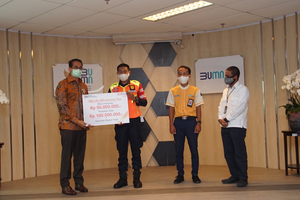 Penyerahan Polis Asuransi BNI Life MProtection Plus kepada dua insan jujur tersebut berlangsung di Synergy Lounge Lt. 3 KemenBUMN RI, Senin (13/7) yang dihadiri dan disaksikan langsung Menteri BUMN Erick Thohir dan Adi Sulystyowati plt Wakil Direktur Utama BNI.