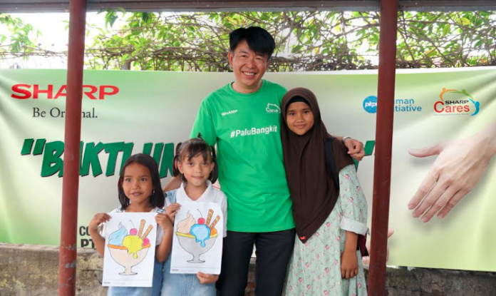 dan desa Pakuli di kabupaten Sigi, ini dimaksudkan agar bantuan dari SHARP dapat dirasakan oleh seluruh warga Palu dan sekitarnya. Kami sadar tidak mudah untuk memulihkan mereka dari rasa trauma yang dalam akibat gempa, namun kami berharap melalui program ini, anak-anak dapat terhibur sekaligus melupakan sejenak rasa sedih dan takut mereka, ungkap Tadashi Ohyama CEO PT Sharp Electronics Indonesia, yang turut hadir untuk membuka acara sekaligus memberikan dorongan semangat bagi para karyawan, dealer serta konsumen setia SHARP di kota Palu.