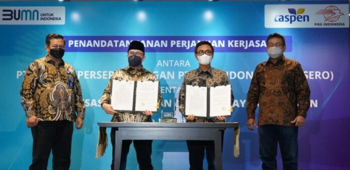 Marketing.co.id – Berita Digital & Teknologi | Sinergi antara PT Dana Tabungan dan Asuransi Pegawai Negeri (Persero) atau TASPEN diwujudkan melalui penandatanganan kerja sama dengan PT Pos Indonesia (Persero) untuk mewujudkan Digitalisasi Pelayanan dan Pembiayaan Pensiun. Sinergi ini diharapkan dapat menyempurnakan ekosistem layanan dan pembiayaan pensiun serta mempermudah pembayaran klaim yang dilakukan serta mendongkrak kesejahteraan para pensiunan yang termasuk dalam Daftar Pembayaran PT Pos Indonesia (Persero) sehingga proses layanan, pembiayaan, dan pembayaran klim kepada para peserta TASPEN dapat lebih mudah dan cepat.