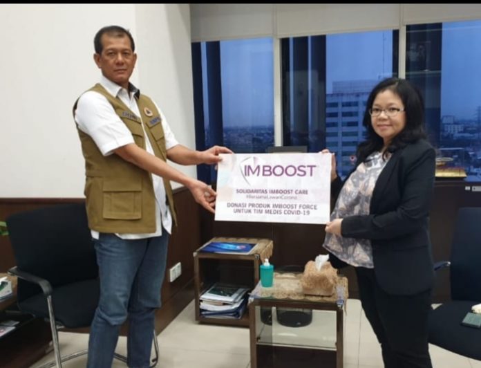 Program tersebut merupakan pemberian donasi produk Imboost Force senilai Rp 1,5 miliar kepada Badan Nasional Penanggulangan Bencana (BNPB) yang berlangsung di Graha BNPB, Jakarta, pada Selasa (30/3/2020). Donasi produk Imboost Force tersebut diserahkan langsung oleh Yuly Indarto, Strategy Management & Corporate Affairs SOHO Global Health kepada Kepala BNPB Letjen Doni Monardo.
