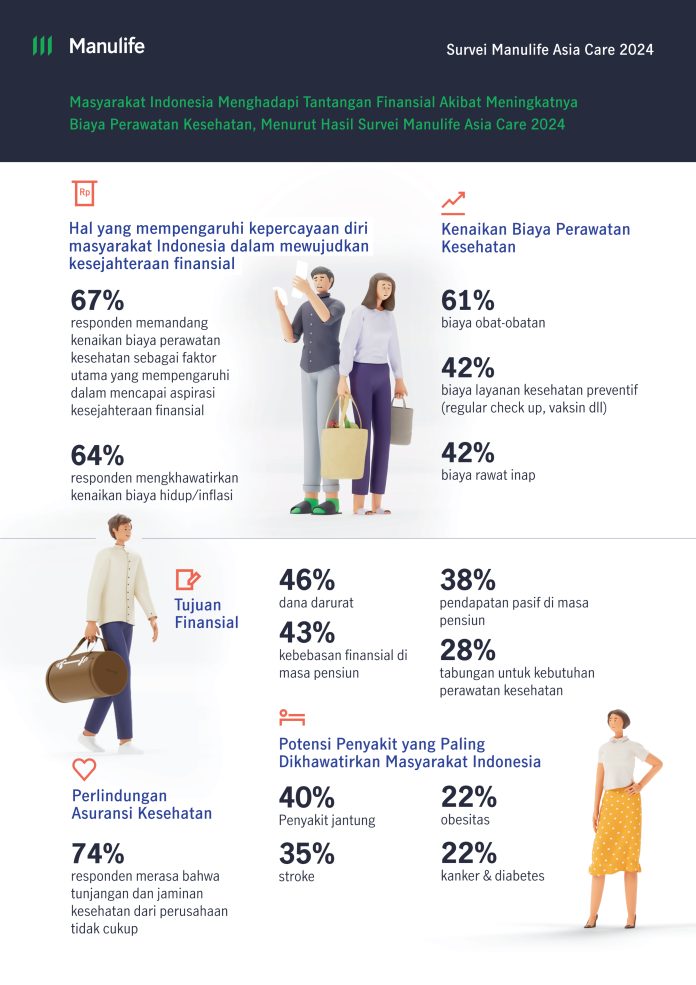 Marketing.co.id — Berita Financial | Masyarakat Indonesia semakin merasa tertekan oleh meningkatnya biaya perawatan kesehatan dan biaya hidup, menurut survei terbaru dari Manulife Asia Care Survey 2024. Survei ini menunjukkan bahwa tekanan finansial yang meningkat mendorong individu untuk mengevaluasi kembali kesiapan mereka dalam menghadapi masa pensiun serta kebutuhan medis yang tidak terduga.