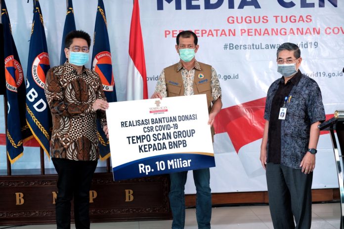 Marketing – Berupaya membantu Indonesia untuk lebih cepat menyelesaikan wabah COVID-19 sehingga masyarakat dapat beraktivitas seperti semula, Tempo Scan Group (TSG) telah merealisasikan penyerahan bantuan kepada Badan Nasional Penanggulangan Bencana (BNPB) sejumlah Rp10 miliar untuk membantu mengatasi wabah COVID-19.