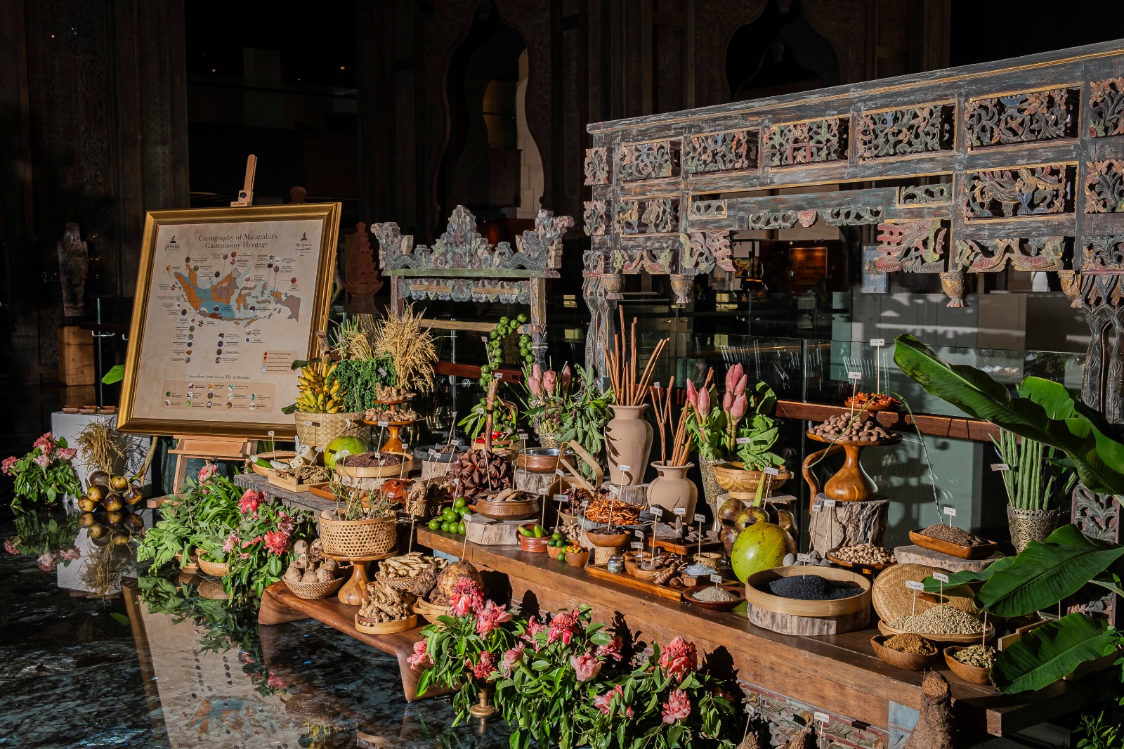 Menu yang dikurasi khusus untuk ‘Majapahit Imperial Dining’ menampilkan ‘Urap Hayuyu’ yang melambangkan harmoni dengan biji-bijian yang tidak biasa seperti Jewawut (Foxtail Millet atau Setaria Italica), ‘Rawon Lembu’ yang diperkaya dengan Kluwek (Pangium) karena kuahnya yang gelap, ‘Botok Iwak’ menghormati setiap bagian dari kelapa, ‘Manuk Urang Manggar’ dengan rasa jeruk dan pedas dari Lada Andaliman, dan ‘Jadah Tape’ sebagai penghormatan terhadap tradisi jajanan kaki lima Tape Uli di Betawi.